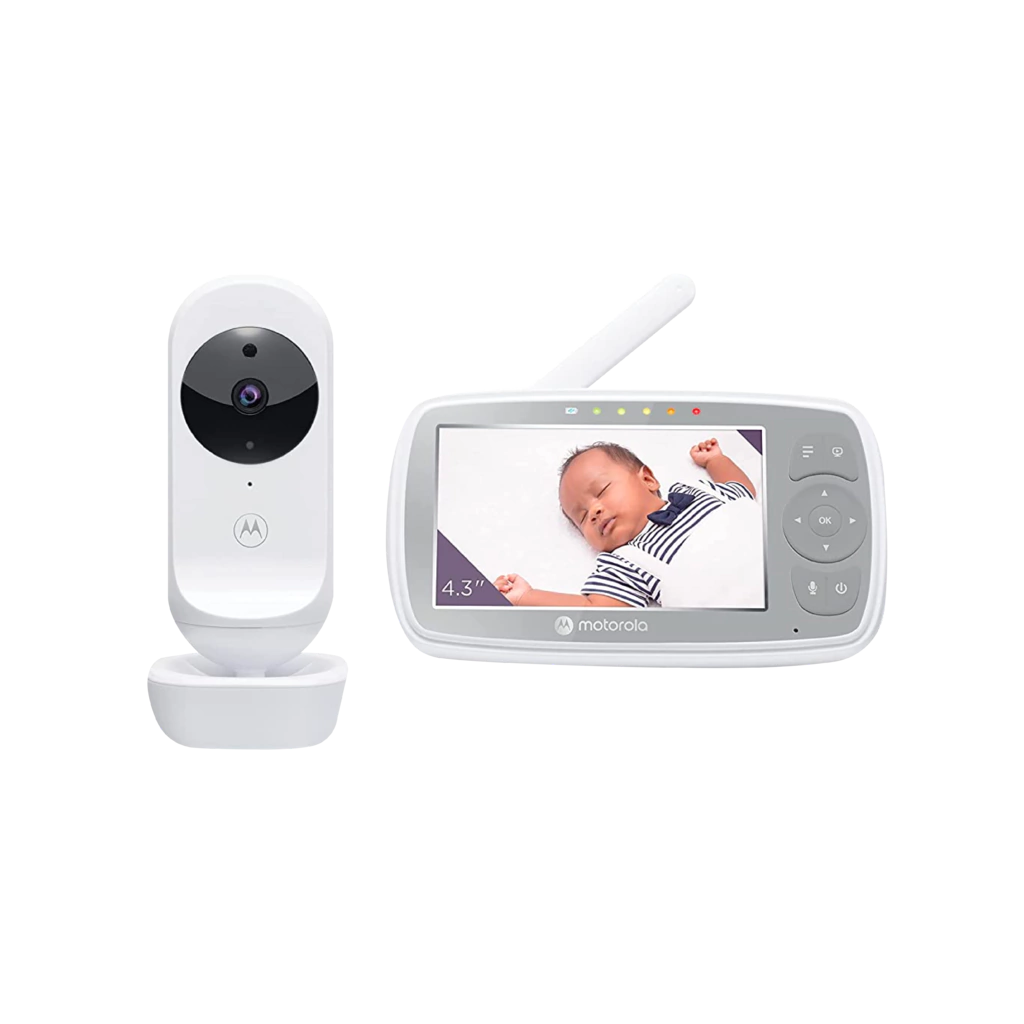 VIDEO MONITOR DE BEBÉ CON CÁMARA Y AUDIO: Visualiza, escucha y comunica fácilmente en la transmisión de video en vivo de la habitación de tu bebé en la pantalla LCD a color de 4.3" de la unidad padre. Incluso por la noche, la cámara infrarroja de visión nocturna ofrece una transmisión de vídeo clara.
